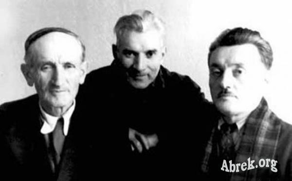 Фото исполнителя роли абрека Зелимхана в фильме "Зелимхан" (1926 г.) с друзьями 1949-1951 гг.Владикавказ (Махарбек Туганов, Ладо Бестаев и Васо Абаев).