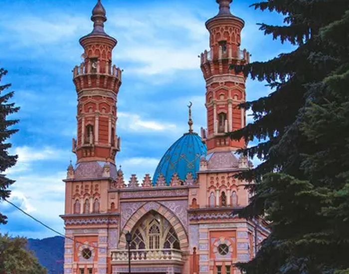 Мечеть Мухтарова — визитная карточка Владикавказа. Красно-голубое здание будто джинн из бутылки расположился на фоне горных вершин на берегу Терека. Кусочек восточного и кусочек мусульманского, не вписывающегося в общую картину, ведь в Северной Осетии по преимуществу жили православные. К началу XX-го века во Владикавказе — многонациональном городе Кавказа уже были построены христианские церкви, шиитская мечеть и кирха, а вот мусульмане-сунниты, которых в основном представляли купцы из Азербайджана, татары и часть осетин не имели своего молитвенного дома. Но уже в 1902 году закладывается первый камень будущей постройки на берегу Терека, впоследствии названная в честь бакинского миллионера — Муртузы Мухтарова.