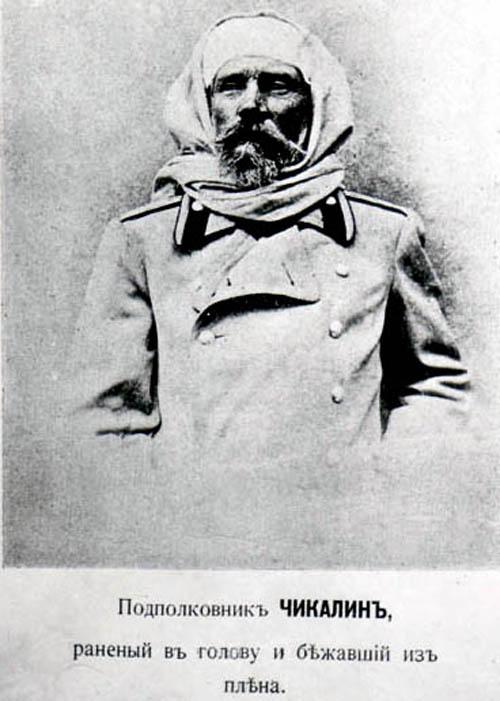 Из рапорта Чикалина: «<...>Заметив, что я открыл глаза, меня подняли и, понукая толчками?— повели за собой… Недалеко от места засады были спрятаны лошади бандитов. Меня окружили восемь человек и один мальчик, лет тринадцати-четырнадцати, по виду совершенно больной и беспомощный. Заставили сесть на одну из свободных лошадей, из чего я заключил, что один из разбойников был убит. На главаре шайки приметил пальто нашего инженера и шашку ротмистра, поняв, что они тоже убиты. Голова сильно болела, во рту пересохло. Просил воды — не дали… Пошли по откосу горы Малого Керкета, на одной из полян остановились. Зелимхану поднесли бутылку с водой, и он сделал намаз, громко читая молитву. <...>