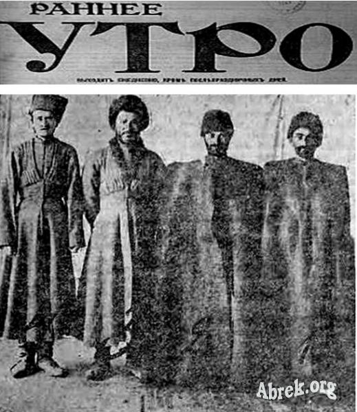 Сподвижники абрека Зелимхана. Фотоиллюстрация к материалу об абреке Зелимхане в газете "Раннее утро".