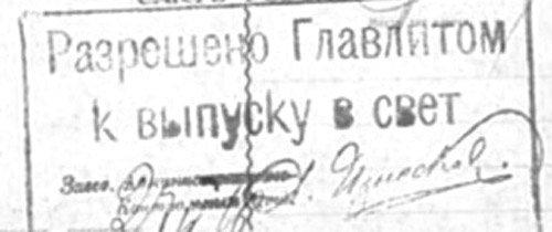 Завершающее действие после набора должен был предпринять я сам: «сдать в печать». Вот книга уже готова. Отпечатаны тысячи экземпляров, но ни один экземпляр не может быть выдан кому бы то ни было, пока НКВД не будут посланы так называемые «сигнальные экземпляры» и на одном из них не появится штамп и подпись начальника СПО НКВД: «Разрешено к распространению».