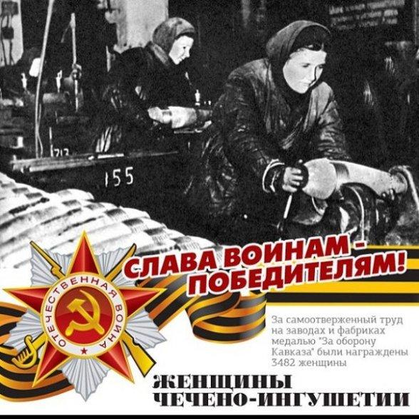 За самоотверженный труд на заводах и фабриках медалью «За оборону Кавказа» были награждены 3482 женщины Чечено-Ингушетии.