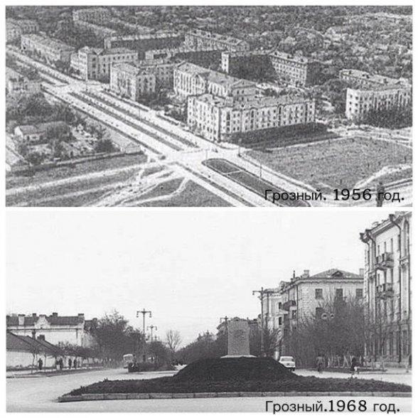 История Чечни. Грозный. 1956 и 1968 гг. Будущая пл. Дружбы народов